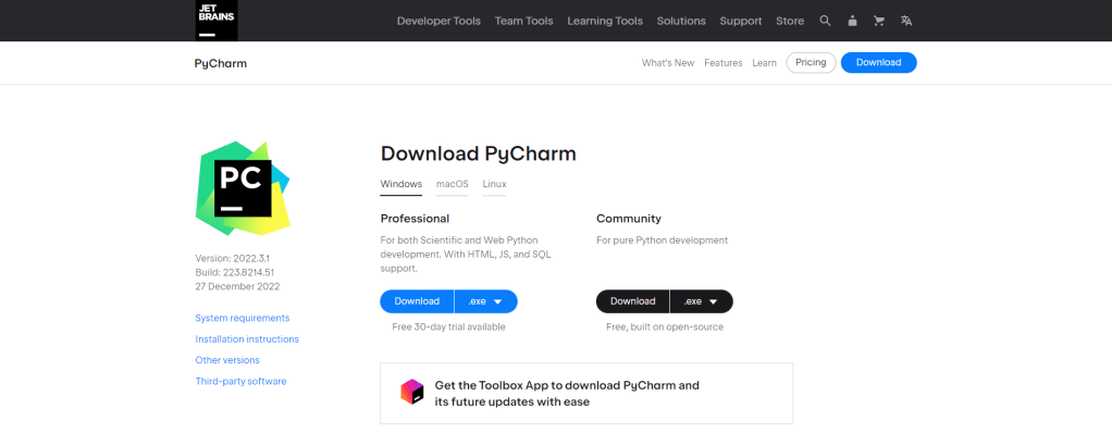 5. Click on the black “Download” button under “Community” and launch the downloaded .exe file for the free version.